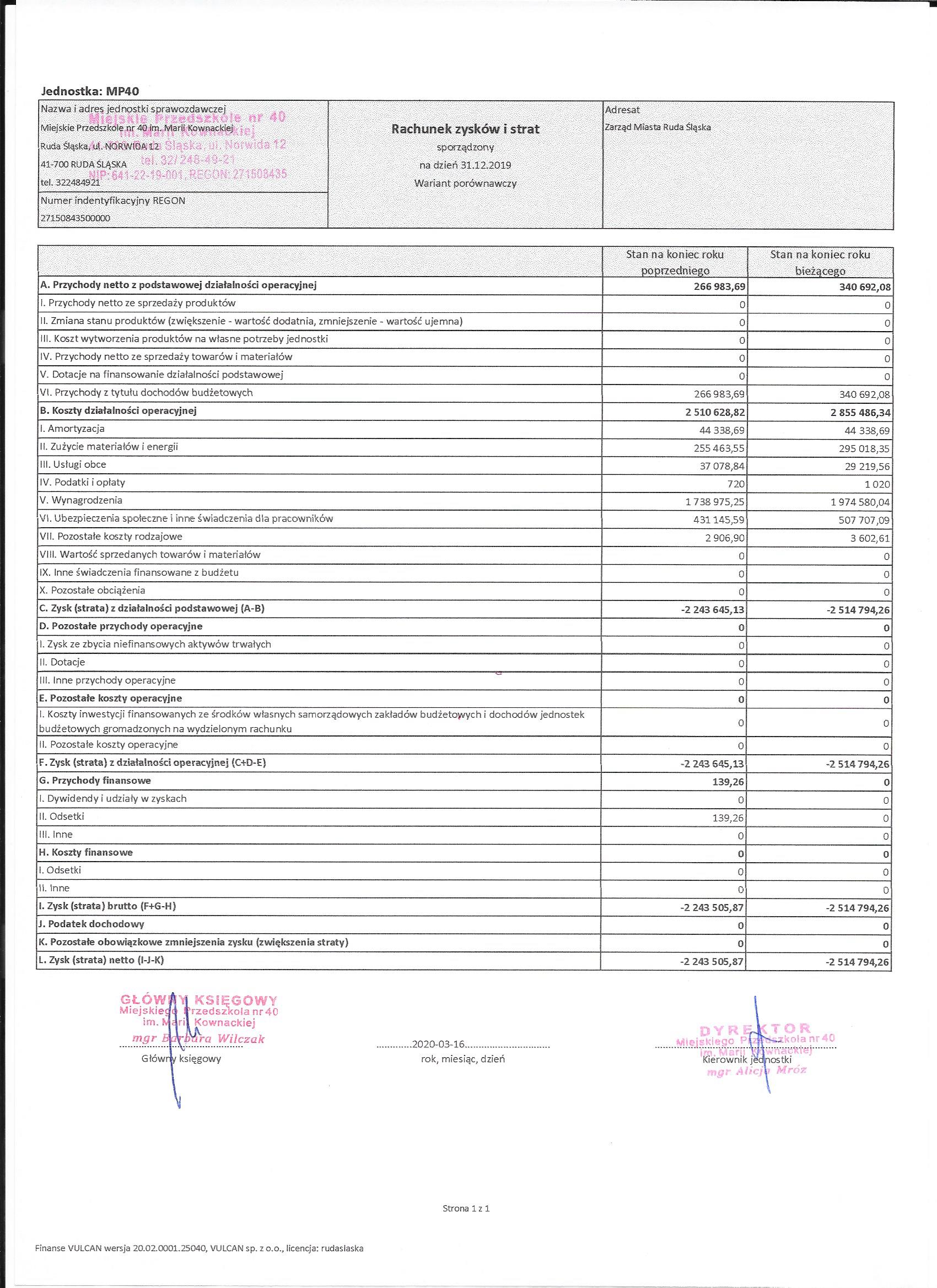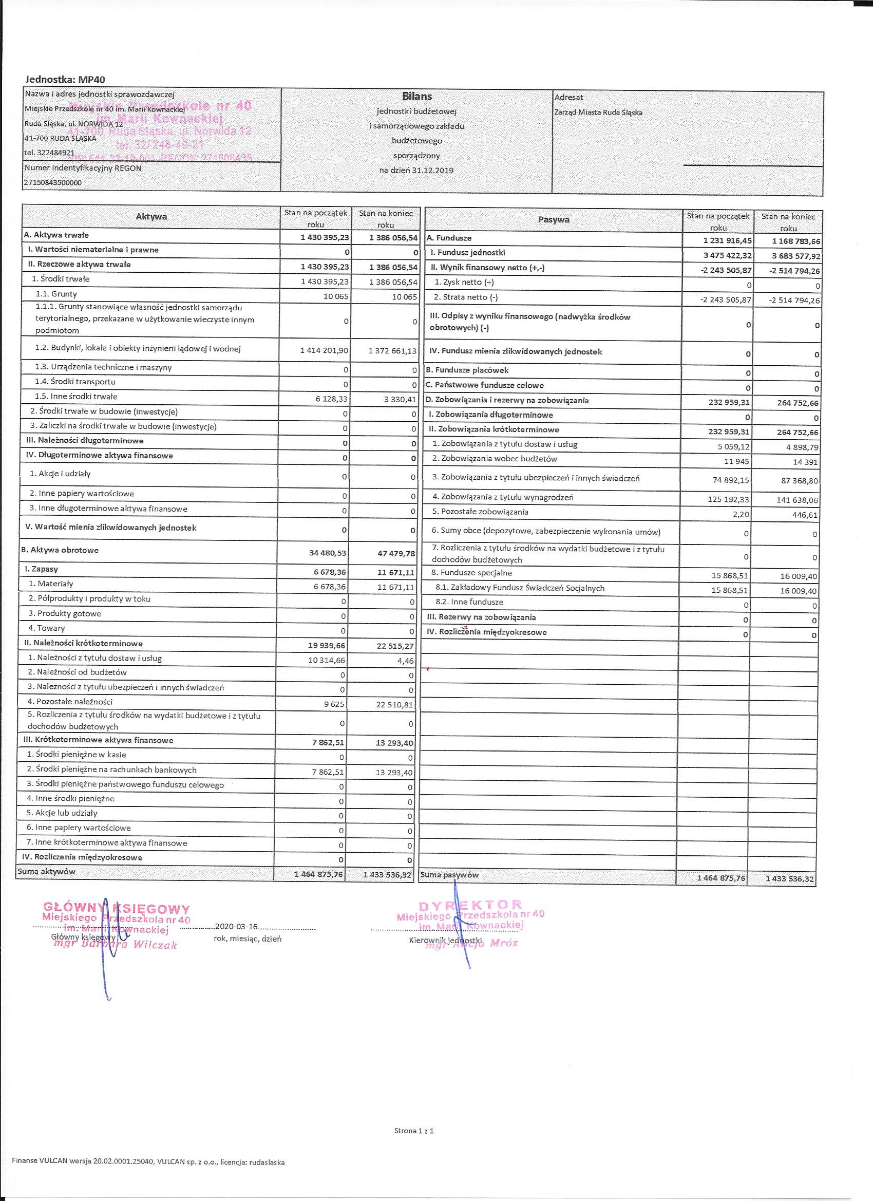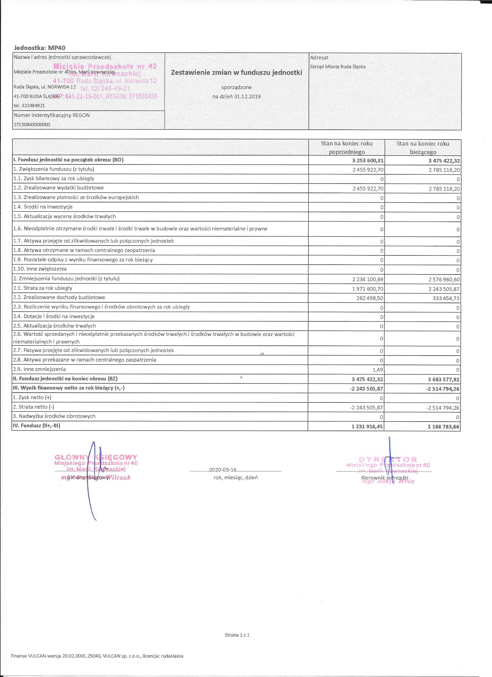 Sprawozdanie finansowe za 2019 rokUtworzono: 26 czerwiec 2020 | Poprawiono: 26 czerwiec 2020 | Opublikowano: 26 czerwiec 2020 | Barbara Wilczak | Drukuj | E-mail | Odsłony: 3132 Sprawozdanie finansowe za 2019 rok (...) Załączniki: bilans.jpeg[ ]585 kB2020-06-26 07:37 bilans skonsolidowany.jpeg[ ]471 kB2020-06-26 07:37 informacja dodatkowa str1.jpeg[ ]306 kB2020-06-26 07:37 informacja dodatkowa str2.jpeg[ ]420 kB2020-06-26 07:37 informacja dodatkowa str3.jpeg.jpeg[ ]289 kB2020-06-26 07:37 informacja dodatkowa str4.jpeg.jpeg[ ]176 kB2020-06-26 07:37 rachunek zysków i strat.jpeg[ ]546 kB2020-06-26 07:37 zestawienie zmian w funduszu jednostki.jpeg[ ]477 kB2020-06-26 07:37
